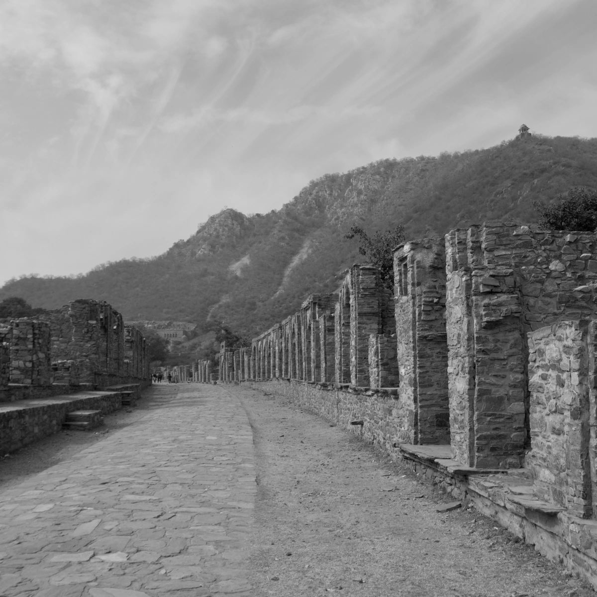 Vervolgens rijd je naar het legendarische Bhangarh Fort, dat beroemd is om zijn mysterieuze geschiedenis en prachtige architectuur. Gelegen op een schilderachtige locatie aan de voet van de Aravalli-heuvels, is dit fort een van de meest spookachtige plekken in India. Het fort staat bekend om zijn legendes en verhalen over de geest van een prinses, wat bijdraagt aan de mystiek van deze plek. Vergeet niet om de panoramische uitzichten over de omliggende heuvels en bossen vast te leggen; de schoonheid van het landschap is adembenemend.