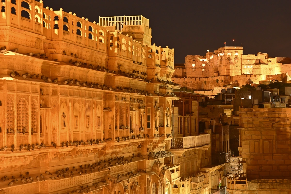 Na het ontbijt bezoek je het imposante Jaisalmer Fort, ook wel bekend als Sonar Quila of het Gouden Fort. Dit UNESCO-werelderfgoed is een levendig fort met smalle straatjes, kleurrijke markten en prachtige havelis. Je bezoekt de Raj Mahal en de verschillende tempels binnen het fort. Hierna loop je naar de Patwon Ki Haveli, een indrukwekkend voorbeeld van de architectuur van Jaisalmer met prachtig houtsnijwerk en gedetailleerde muurschilderingen.