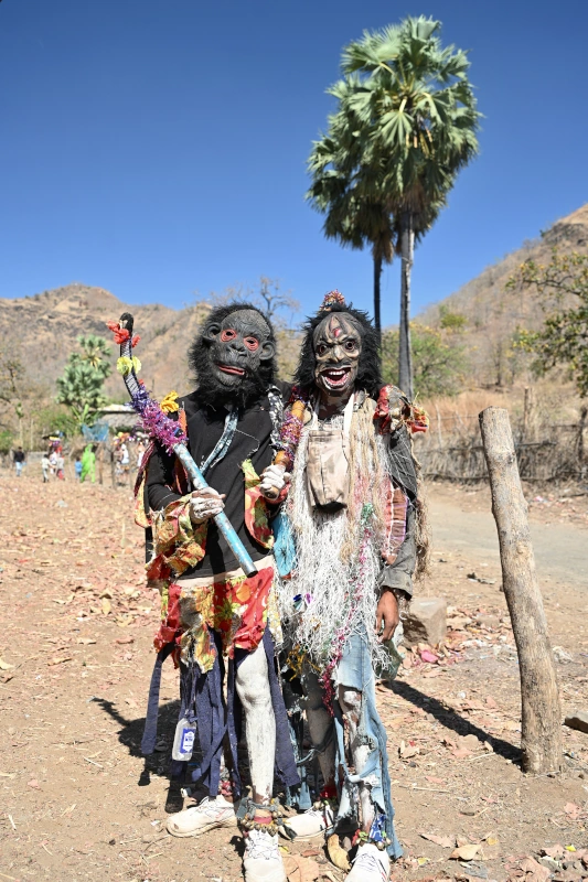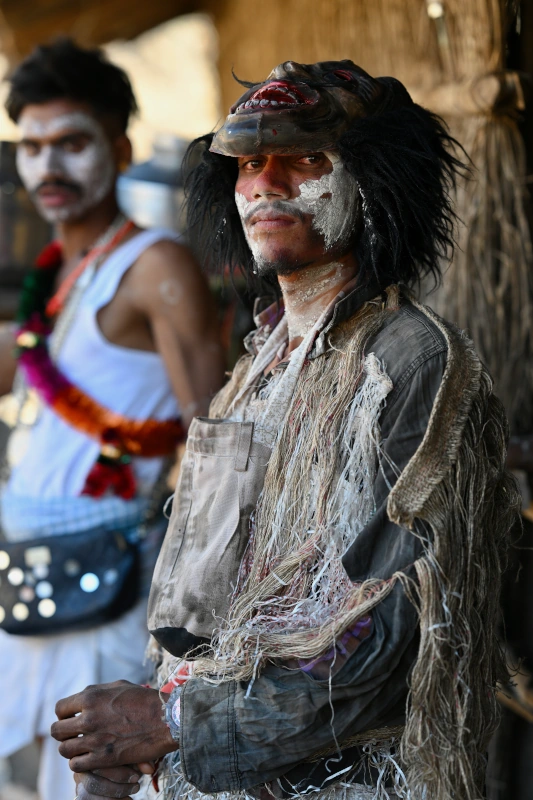 Holi is hier meer dan alleen kleur: het is een diep spiritueel evenement geworteld in eerbied voor het land, de goden en de wijsheid van generaties. Dorpsbewoners dragen symbolische totems en voeren traditionele dansen uit op het ritme van drums en fluiten, in een sfeer die zowel hypnotiserend als indrukwekkend is.