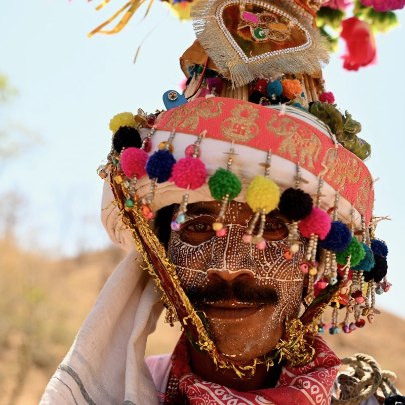 Als onderdeel van deze bijzondere reis steek je ook de grens over naar het naburige Madhya Pradesh, waar andere tribale gemeenschappen Holi op hun eigen heilige en gemeenschappelijke manier vieren, waardoor je een breder perspectief krijgt op het rijke mozaïek van inheemse tradities in Centraal-India.